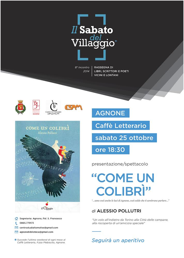 AGNONE – Sarà Alessio Pollutri, scrittore termolese, il protagonista dell’ottavo appuntamento de “Il sabato del villaggio”, organizzato dall’assessorato alla cultura, le Biblioteche riunite Comunale e Labanca con la collaborazione del Csam.