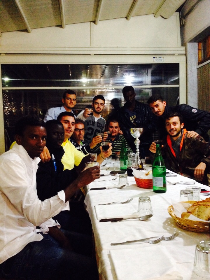 E dopo la premiazione la festa è continuata attorno ad un tavolo con i calici alzati… per un brindisi alla vittoria e alla integrazione multietnica.
