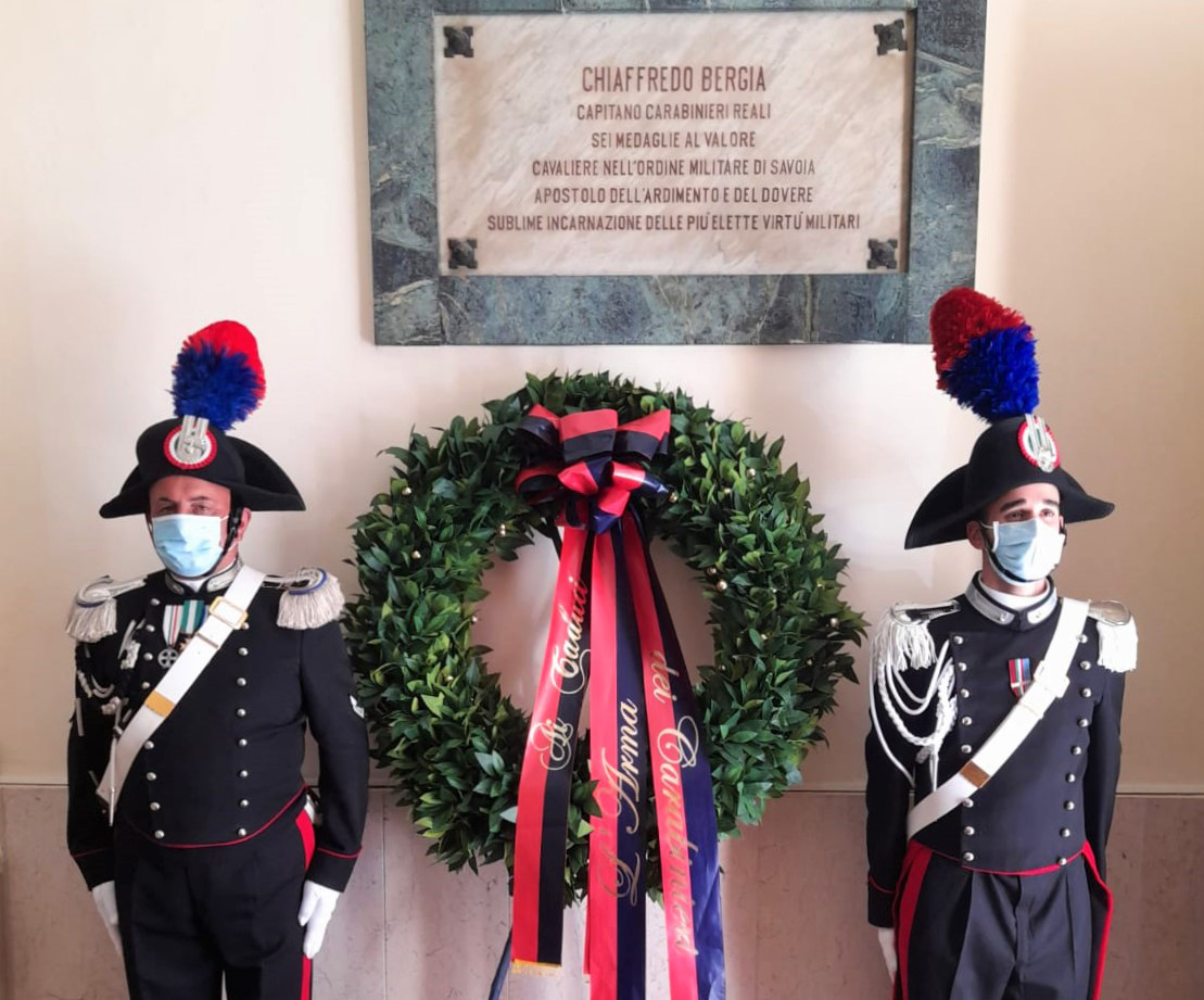 Nella mattinata di oggi, in occasione della ricorrenza del 150° anniversario della concessione della terza medaglia al valore militare al Brig. Chiaffredo BERGIA, sono state depositate due corone di alloro nelle località maggiormente legate alla sua memoria: in Chieti, all’interno del Comando Provinciale Carabinieri, dove è ubicata una lapide commemorativa a lui dedicata; in Atessa (CH), presso la sede della Sezione A.N.C. (Associazione Nazionale Carabinieri) a lui intitolata.