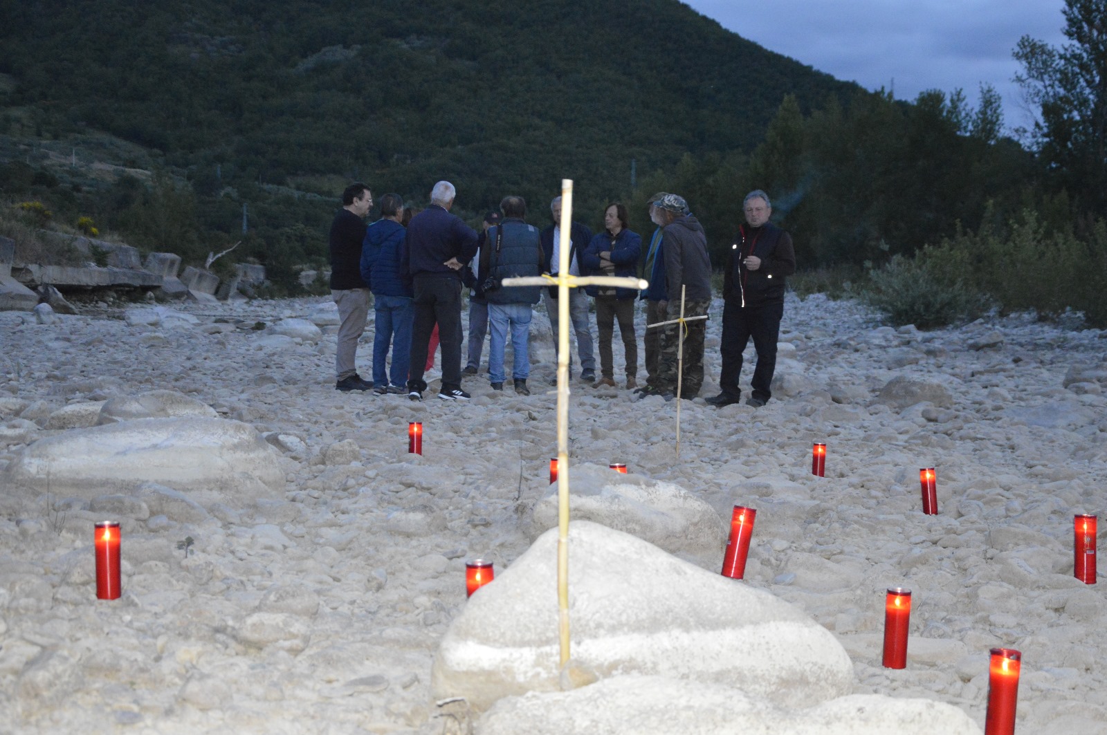 Decine di fiaccole votive sono state accese e deposte, nella serata di ieri, da un gruppo di cittadini di Celenza sul Trigno, sul letto del Trigno ormai arido. Solo pietre, nemmeno un goccio d’acqua e dunque la provocazione dei cittadini, molti volontari della Protezione civile del posto, con la deposizione dei lumini a simboleggiare appunto il funerale del fiume Trigno.