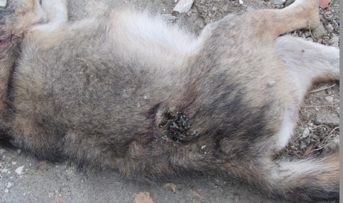 Probabilmente, il lupo, dopo essere stato ucciso in altra zona, è stato trasportato in località “Marella”.