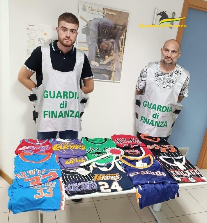 Nella mattinata di mercoledì, i militari del Gruppo della Guardia di Finanza di L’Aquila, nel corso delle attività finalizzate a contrastare l’abusivismo commerciale e la contraffazione in genere, presso il mercato cittadino nella zona di Piazza d’Armi, hanno sottoposto a controllo un cittadino italiano intento alla vendita sulla bancarella di magliette riportanti le effigie di note squadre militanti nel campionato di basket americano NBA, pervenendo al sequestro di 120 capi di abbigliamento sportivo.