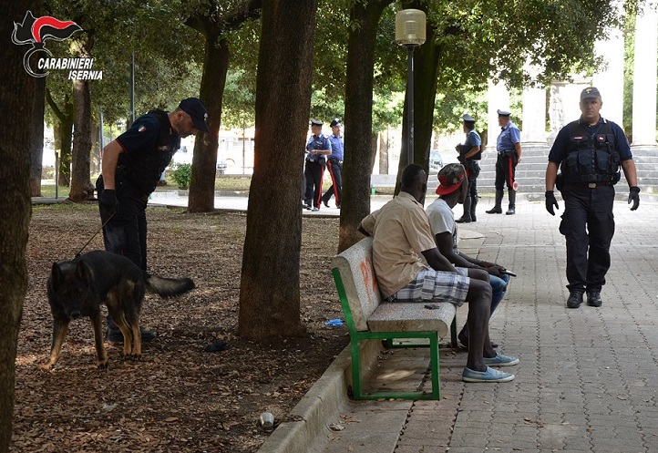 dal Nucleo Operativo e Radiomobile, dal personale del Nucleo Investigativo e da Unità Cinofile antidroga dell’Arma. Perquisizioni sono state eseguite anche presso alcuni centri di accoglienza temporanea del capoluogo. Ad Isernia, tre cittadini di nazionalità nordafricana, un 21enne, un 23enne ed un 30enne, tutti richiedenti asilo, sono stati fermati ed accompagnati in caserma, in quanto, grazie al fiuto eccezionale del cane pastore tedesco “Nox”, addestrato dall’Arma proprio per la ricerca di sostanze stupefacenti, sono stati trovati in possesso di dosi di marijuana per un peso complessivo di oltre sessanta grammi e banconote in contanti pari a circa un centinaio di euro. I tre sono stati denunciati all’Autorità Giudiziaria, mentre la droga e il denaro contante, quale presunto ricavato dell’attività di spaccio, sono stati sottoposti a sequestro.