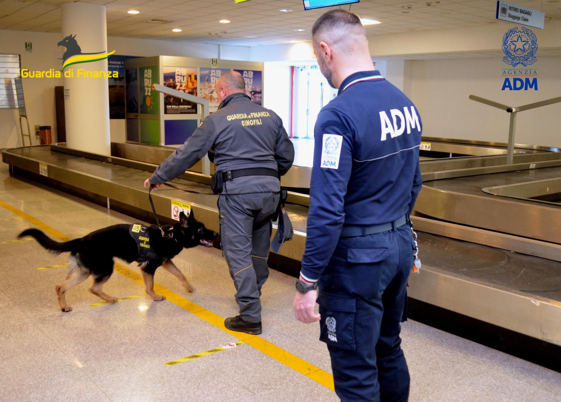 Nell’ambito dei controlli volti alla prevenzione e alla repressione del traffico illecito di sostanze stupefacenti nell’aeroporto d’Abruzzo, un’operazione congiunta della Guardia di Finanza e dell’Agenzia delle Dogane e dei Monopoli ha portato al sequestro di circa 30 grammi di marijuana.