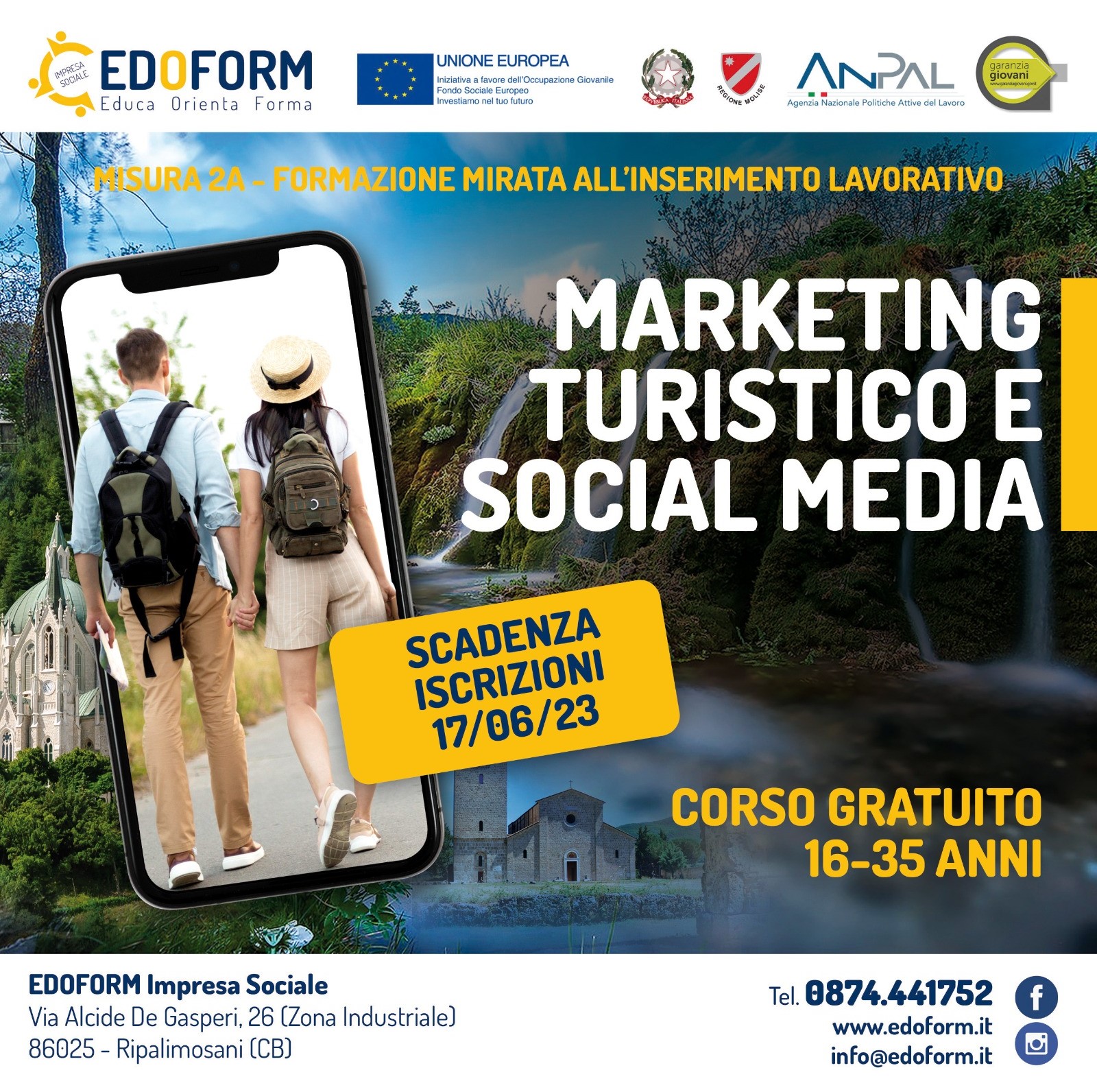 In una regione come il Molise dove il turismo sta diventando un elemento fondamentale per la crescita economica e sociale del territorio, è importante formare figure professionali che sappiano gestire iniziative di marketing e comunicazione. Con tale scopo l’ente di formazione Edoform, con sede a Ripalimosani, promuove il corso di formazione professionale Marketing turistico e social media”.
