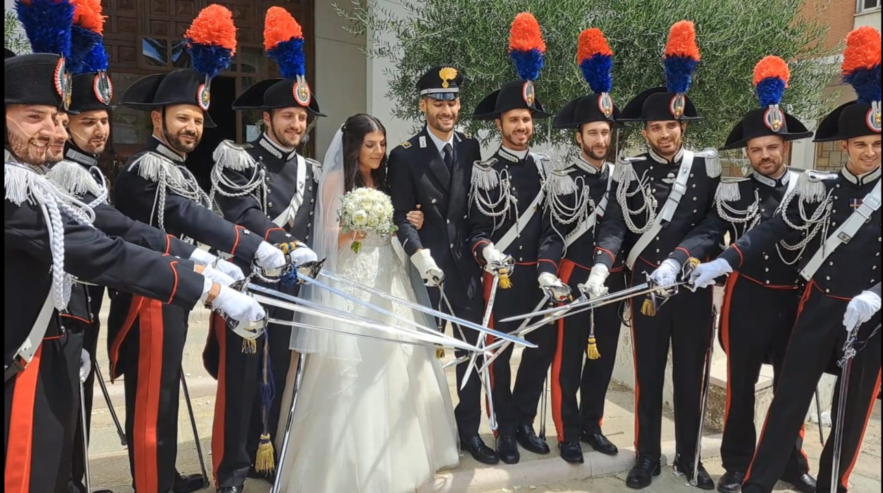 Probabilmente in caserma è abituato a comandare, visti i gradi che porta sulle mostrine, ma ora ha trovato chi gli farà sbattere i tacchi e forse dire anche «Signorsì» tra le mura domestiche. Perché in casa, si sa, comanda sempre la signora, soprattutto se è una donna dell’Alto Molise. Scherzi a parte, il maresciallo dei Carabinieri Walter Scampamorte, comandante della stazione di Schiavi di Abruzzo, ha detto «sì», davanti a Dio e ai suoi commilitoni in grande uniforme, prendendo in sposa Martina Amicone di Poggio Sannita, giurandole di essere fedele sempre, di amarla, onorarla e rispettarla tutti i giorni della sua vita. Identico giuramento, che la impegna per l’eternità, è stato pronunciato davanti al ministro di Dio, dalla giovane e bella Martina, tra l’altro figlia del vicesindaco di Poggio Sannita.