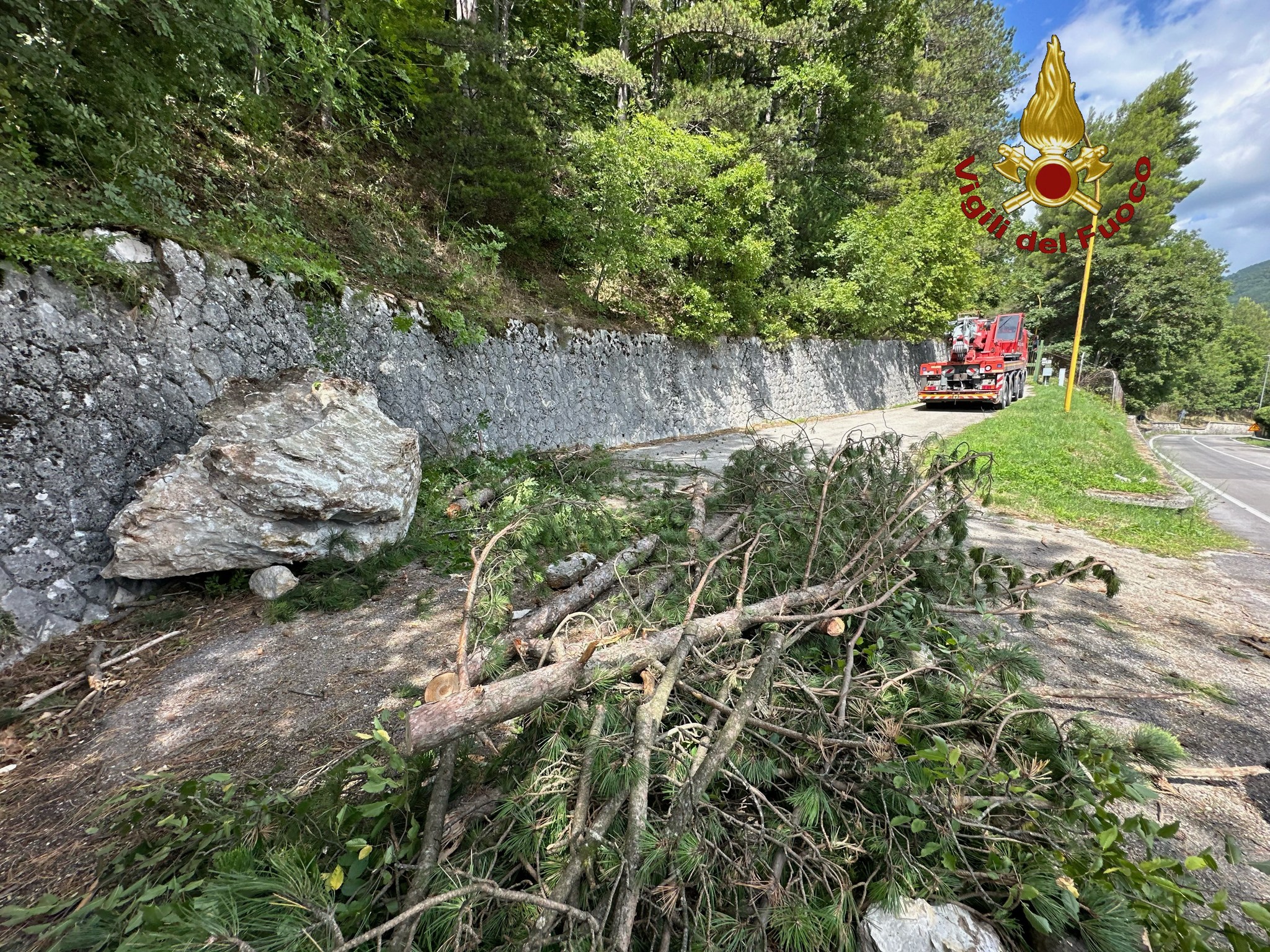 I Vigili del Fuoco hanno quindi provveduto a rimuovere i massi presenti sulla sede stradale e a mettere in sicurezza il masso più pericoloso, riducendo il rischio di ulteriori smottamenti, nelle more di più accurate verifiche da parte dell’Ente competente gestore della strada.