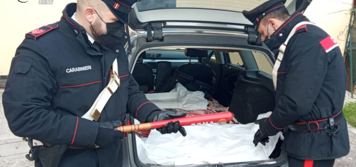 Aveva una mazza da baseball in macchina, denunciato dai Carabinieri un 61enne del Chietino. I carabinieri della stazione di Miglianico hanno denunciato in stato di libertà per porto di arnesi atti ad offendere alla procura della Repubblica di Chieti , un 61enne di origini calabresi gravato da diversi precedenti residente a Pescara. Nel corso di un servizio preventivo nell’area industriale di Miglianico, la pattuglia ha controllato una vecchia Lancia Ypsilon con a bordo due uomini, che non avevano dato una valida motivazione per trovarsi a quell’ora in giro per Miglianico. La loro auto è stata perquisita e nell’abitacolo i carabinieri hanno trovato una mazza da baseball di cui uno dei due se ne è attribuito il possesso, senza però essere in grado di giustificarne il motivo del porto che è vietato se non per attività sportiva. La mazza è stata quindi sottoposta a sequestro e l’uomo denunciato in stato di libertà, come detto, alla Procura della Repubblica di Chieti. In caso di condanna rischia l’arresto da sei mesi a due anni e l’ammenda da mille euro a diecimila euro.