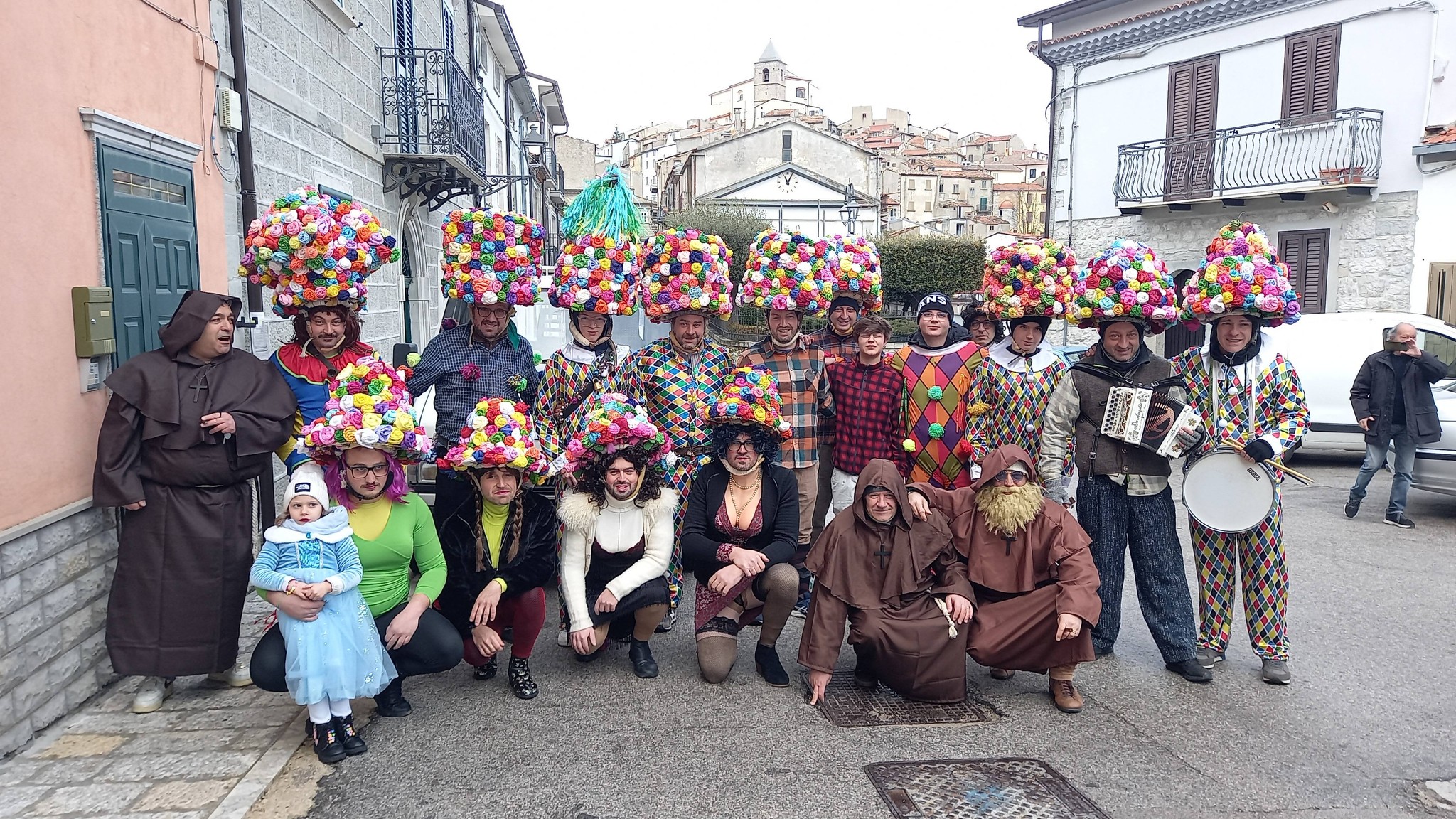 Sempre più apprezzata e partecipata la festa di carnevale a Schiavi di Abruzzo. Dopo la giornata dedicata al giro delle frazioni, sabato sorso, oggi “I Mazzaroni”, con il tradizionale Cimiero (C’mir) di varie forme, ricoperto di colorati fiori di carta e nastri (zagarelle), si sono esibiti in paese. L’avvio dei festeggiamenti in contrada Valloni per poi proseguire, fino a sera, tra le strade del centro.