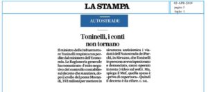 BELMONTE DEL SANNIO – “Toninelli, i conti non tornano” titola oggi La Stampa in un fondo che analizza la bocciatura da parte del Mef del decreto emergenza, quello emanato dal Governo dopo il crollo del ponte Morandi e che riguarda anche i viadotti dell’autostrada in Abruzzo e in linea teorica anche il ponte Sente tra Castiglione Messer Marino e Belmonte del Sannio.