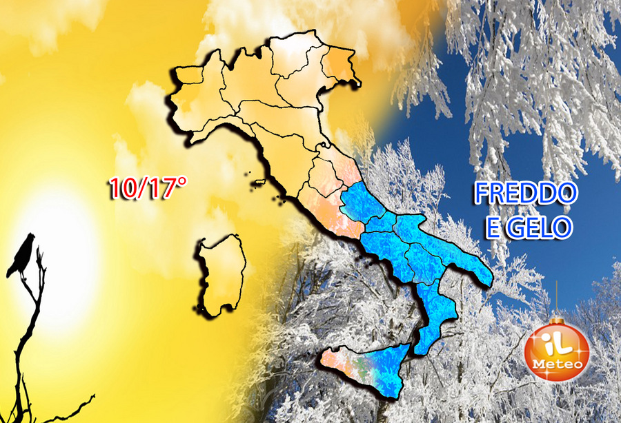 TEMPERATURE – Rispetto alla media del periodo i valori termici saranno superiori di quasi 8/10°. Clima decisamente piacevole per il periodo su tutte le Alpi, i colli e al Sud, dove si sforeranno i 12/15°, addirittura anche 18° sulle due Isole maggiori. Valori massimi decisamente molto bassi invece dove vi sarà presenza di nebbia, e con misurazioni non più alte di 4/6°. Di notte i valori al Nord potranno scendere sotto lo zero soltanto in montagna, sui colli e spesse volte anche in pianura. Valori più alti invece al Centro-Sud.
