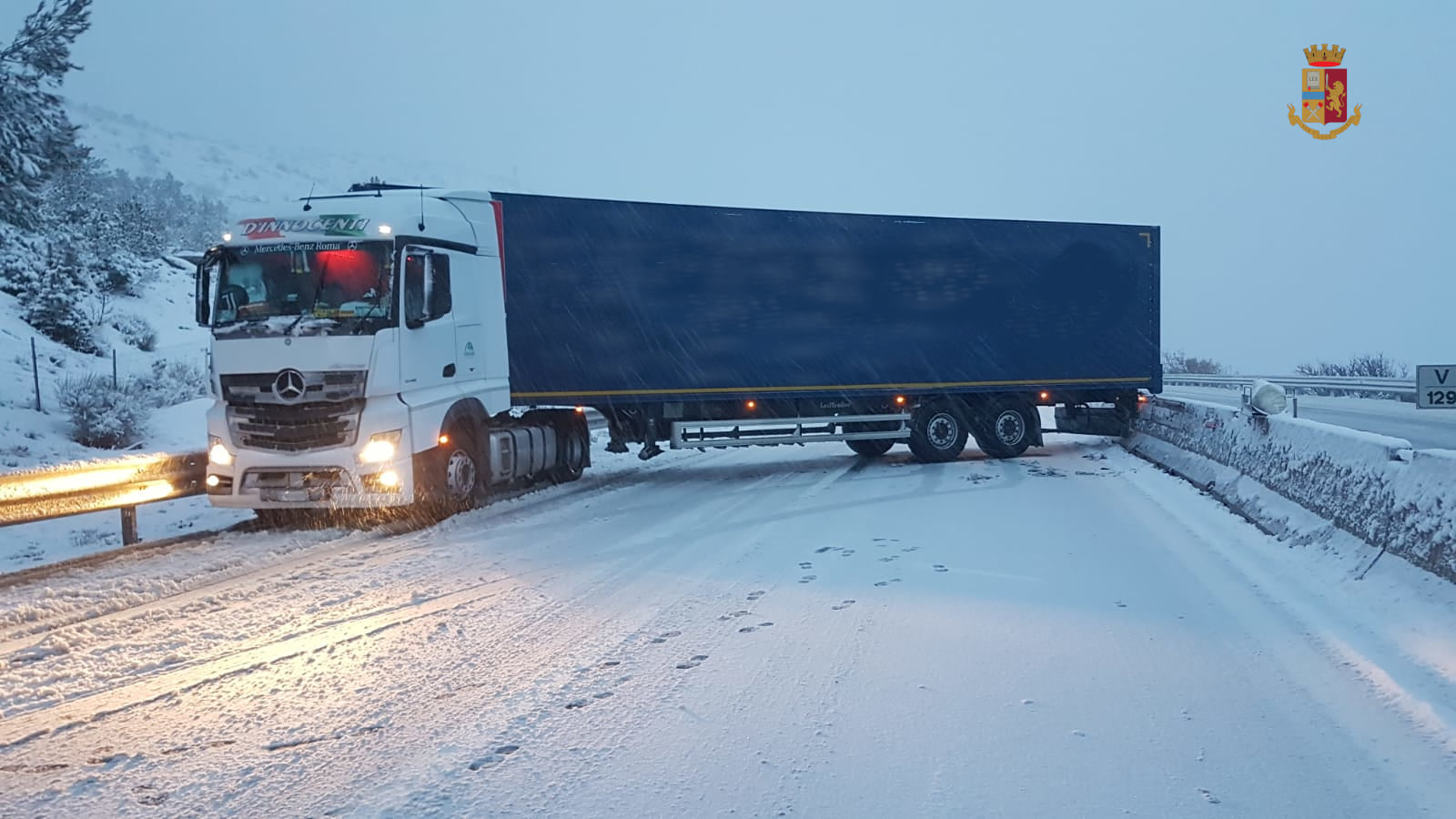 In A25, interessata da nevicate in più punti tra Magliano dei Marsi e Villanova, poco dopo le ore 7 di ieri un mezzo pesante si è intraversato nei pressi del casello di Cocullo, sulla carreggiata in direzione di Roma, ma il pronto intervento di una pattuglia della Sottosezione Polizia Stradale di Pratola Peligna e dei mezzi speciali della società concessionaria ha consentito di ripristinare in breve il flusso veicolare, peraltro assai contenuto, senza particolari disagi.