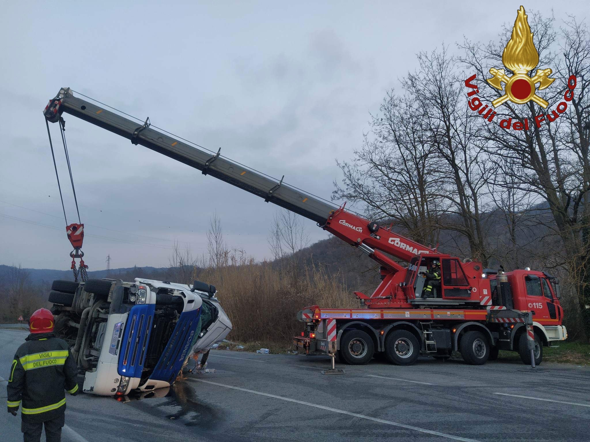 Mezzo pesante si ribalta, traffico bloccato per ore: Vigili del fuoco in azione