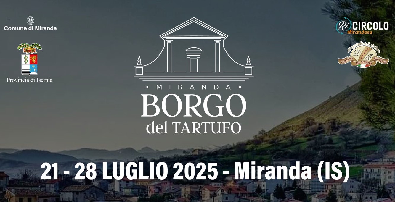Il borgo di Miranda, incastonato nel cuore dell’Appennino molisano, si prepara a ospitare la prima edizione di “Miranda, Borgo del Tartufo – Festival di Cultura e Gastronomia”, una settimana interamente dedicata alla valorizzazione del tartufo nero estivo e delle eccellenze del territorio, in programma dal 21 al 28 luglio 2025. Con il patrocinio della Provincia di Isernia, del Comune di Miranda e organizzato nel solco della storica “Tartufata” dal Ricircolo Mirandese, il festival nasce dal desiderio di rafforzare e ampliare il patrimonio culturale e gastronomico già promosso da La Tartufata, storica manifestazione locale che da oltre trent’anni celebra il tartufo nero molisano con eventi culinari di qualità.