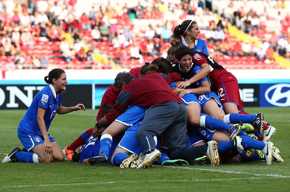 La Nazionale Under 17 Femminile chiude al terzo posto il Campionato del Mondo FIFA e torna in Italia con una storica medaglia di bronzo. Nella finale per il terzo posto, giocata nella notte allo Estadio Nacional di San José in Costa Rica, le Azzurrine di Enrico Sbardella si sono imposte ai calci di rigore sul Venezuela al termine di una gara avvincente, ricca di gol e giocata a viso aperto da entrambe le squadre, conclusa con il risultato di 4-4 alla fine dei tempi regolamentari (6-4 d.c.r.). Grande il cuore delle Azzurrine che ancora una volta, dopo il quarto di finale con il Ghana, si sono viste recuperare il vantaggio negli ultimi secondi di gioco e giocarsi la vittoria dagli undici metri. Anche in questo caso decisive le parate del portiere Durante e la freddezza al tiro delle giocatrici azzurre.