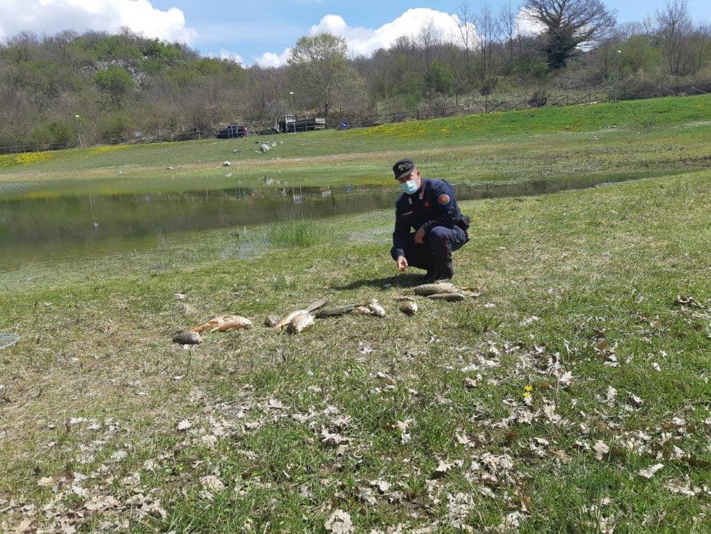 I militari della Stazione Carabinieri Forestale di San Giuliano del Sannio (CB), durante il quotidiano servizio di controllo del territorio, sono intervenuti per una segnalazione di una moria anomala di pesci nel lago Carbone, utilizzato per la pesca sportiva ed oggetto di recente di ripopolamento.