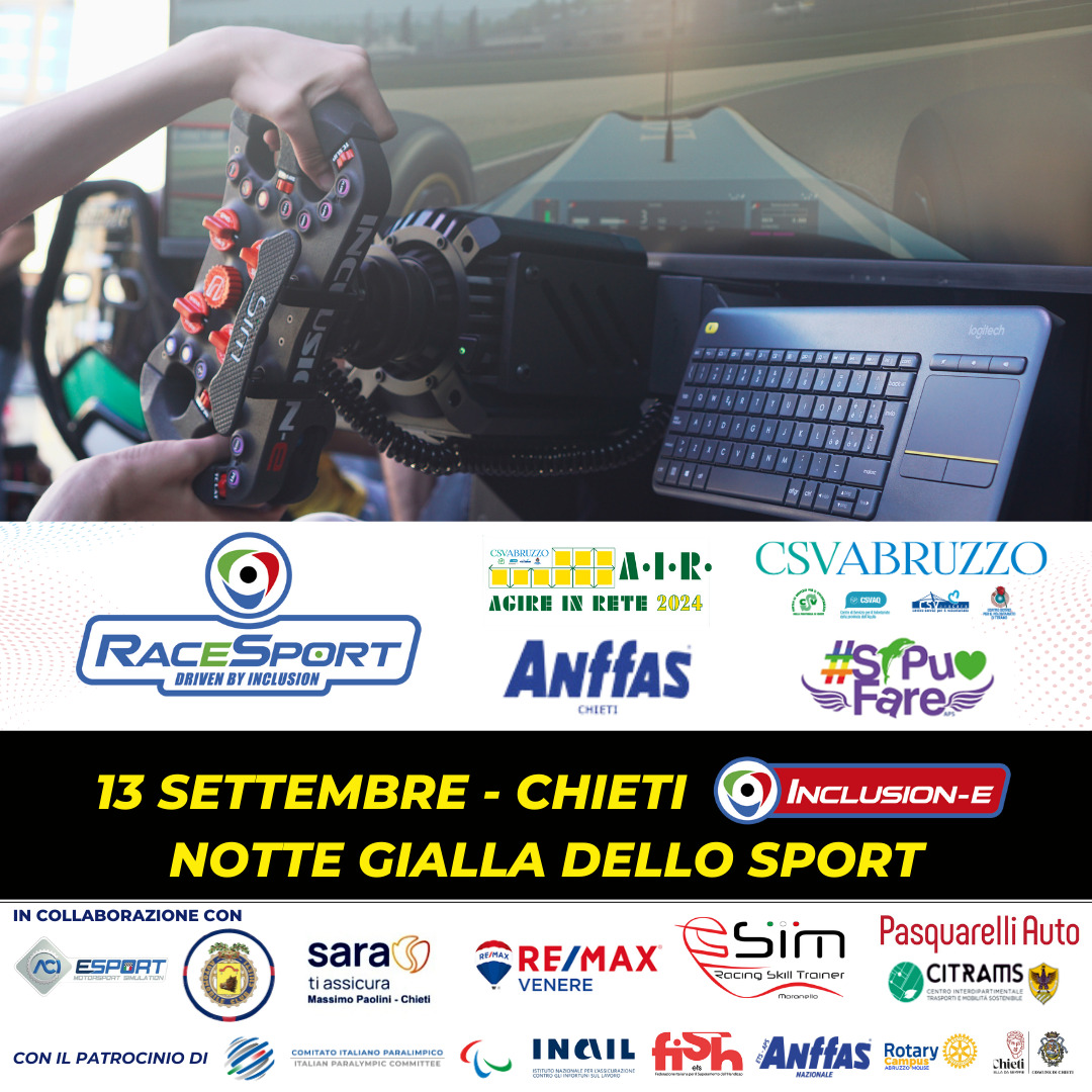 “Motorsport for People”, ovvero “Inclusion-E”: si chiama così un bel progetto, ideato e realizzato dall’associazione Racesport, per la progressiva diffusione nei confronti delle persone con disabilità della disciplina sportiva automobilistica ‘virtuale’ del Sim Racing, riconosciuta, a livello nazionale, da CONI e ACI e, a livello internazionale, dalla F.I.A. (Fe-derazione Internazionale dell’Automobilismo).