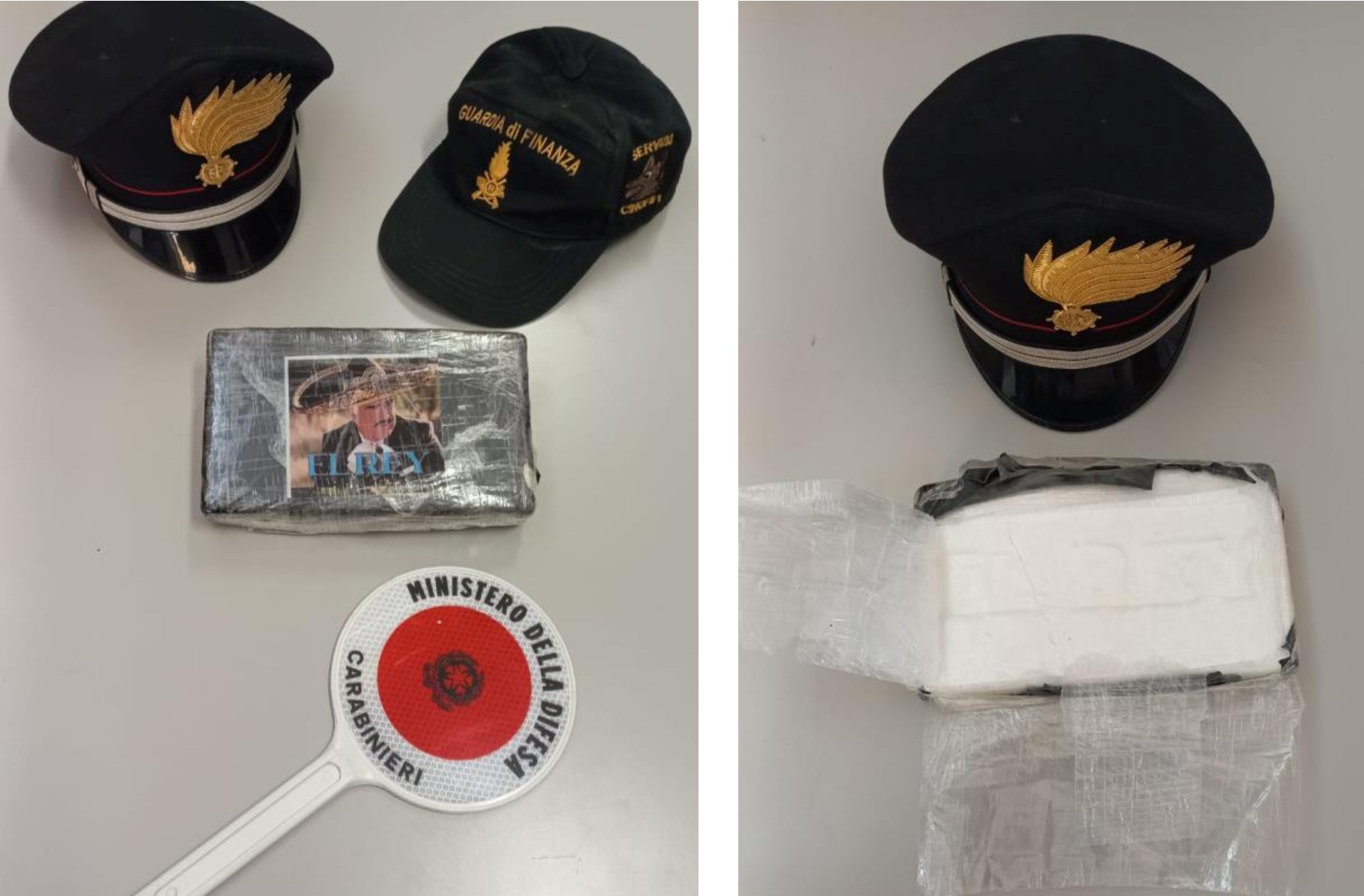 La perquisizione permetteva di rinvenire, nascosto in una busta per la spesa, un involucro di cellophane con l’immagine di un uomo con un sombrero, che conteneva al suo interno, secondo quanto accertato dai test preliminari, kg.1.143 di cocaina. Veniva ispezionata con attenzione l’intera area, ma non sono stati trovati altri quantitativi di droga.