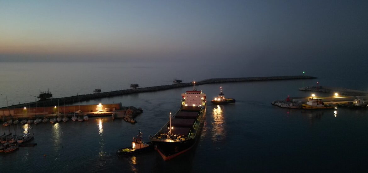 Veniva pertanto sollecitato l’intervento di un secondo rimorchiatore, giunto da Termoli, per consentire il disincaglio della nave, il quale arrivato alle ore 18.30 circa, dopo un’ora, congiuntamente ai restanti servizi tecnico nautici, riusciva a liberare la nave ed a condurla in sicurezza agli ormeggi alle 20.00, dove proseguiva le normali operazioni commerciali.