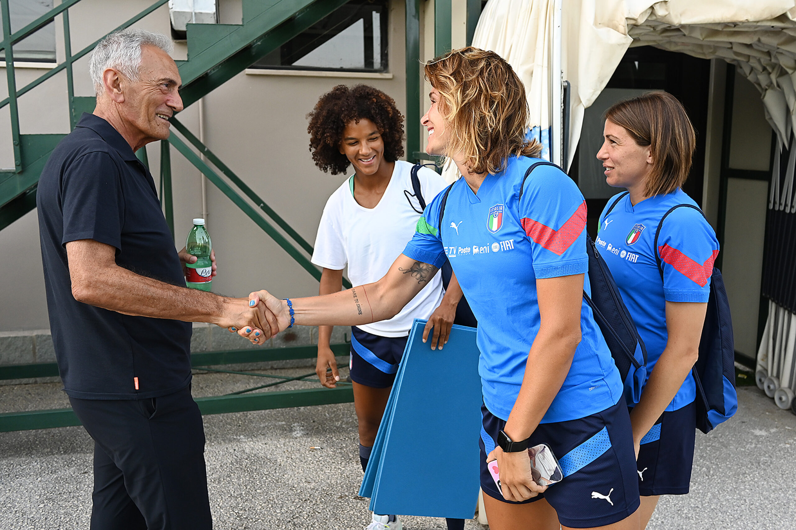 Dopo l’allenamento di questa mattina, che ha visto il ritorno in gruppo del difensore Martina Lenzini, reduce da un problema muscolare che l’ha tenuta ai box per quasi un mese, nel pomeriggio le Azzurre hanno ricevuto la visita a sorpresa del presidente federale Gabriele Gravina, che ha voluto salutare e dimostrare la sua vicinanza a Milena Bertolini, allo staff tecnico e alle 27 calciatrici. Gravina si è intrattenuto con la Ct e con il dirigente accompagnatore Chiara Marchitelli e ha poi assistito alla seduta di lavoro di Sara Gama e compagne.