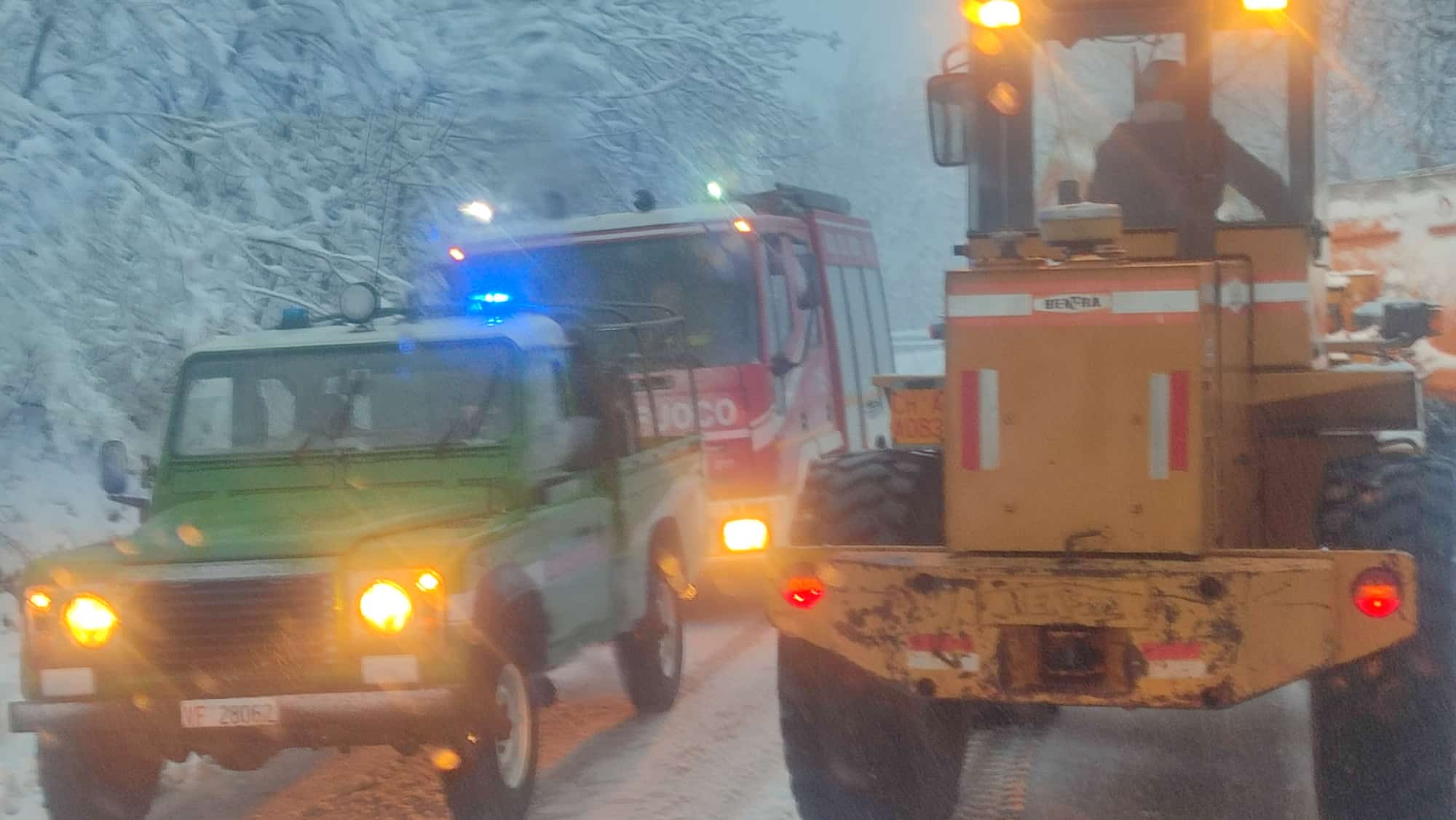 Stanno operando i Vigili del fuoco lungo la provinciale tra Castiglione Messer Marino e Montazzoli dove tre autobus di linea sono rimasti bloccati e incolonnati a causa del manto nevoso e della presenza di rami e alberi sulla sede stradale, abbattuti dal maltempo.