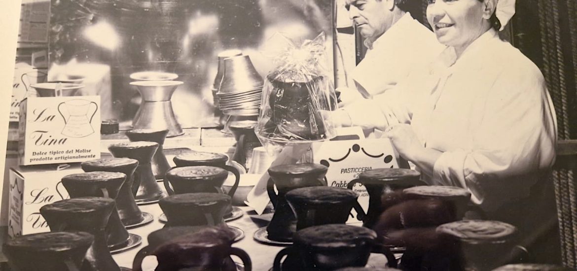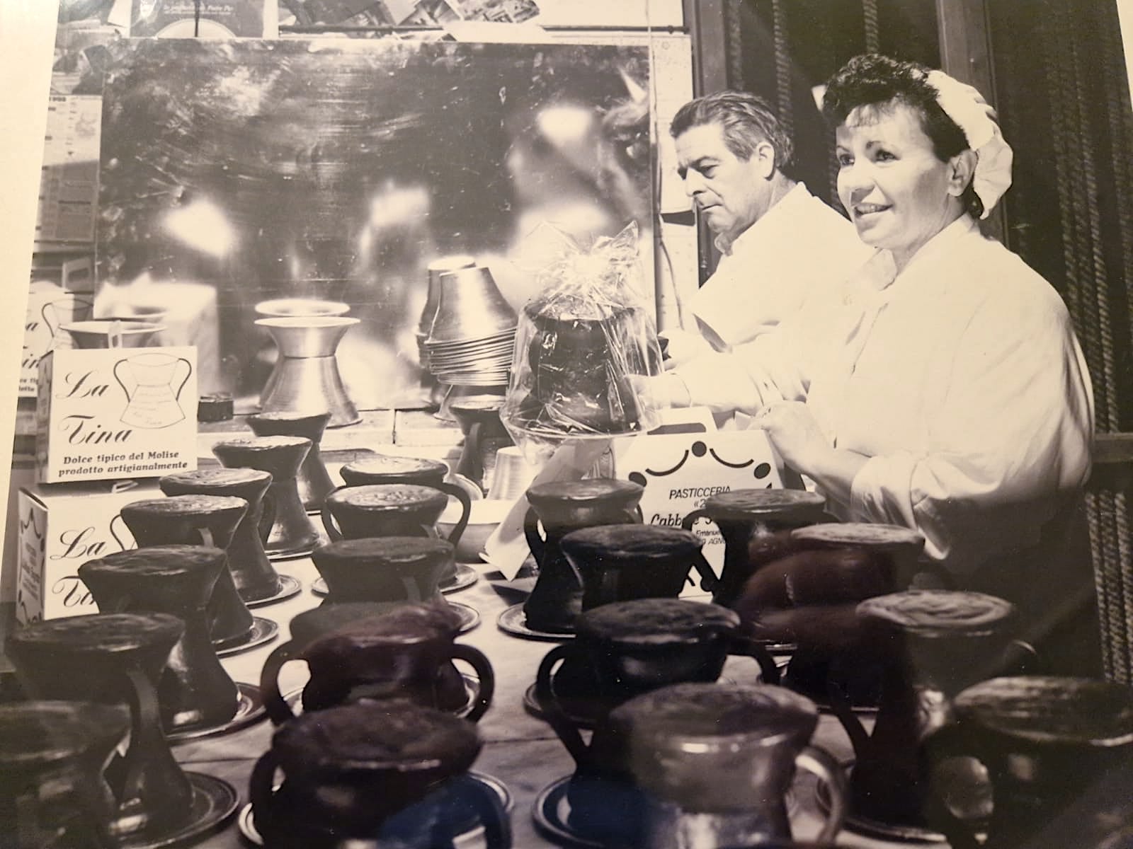 Abnegazione, cura maniacale delle lavorazioni, scelta rigorosa delle materie prime, ma soprattutto idee e visione. Il laboratorio dietro il bancone diventa il cuore pulsante dell’attività. È lì che si aggira un Germano undicenne, il più piccolo della famiglia dopo Annamaria e Massimiliano. Osserva, impara, assorbe. E dentro di sé matura già una promessa: superare il maestro, che poi è suo padre. Zeppole, ostie, mostaccioli, paste di altissima qualità. Ma la consacrazione arriva con la tina, dolce di cioccolato che fa conoscere il nome Labbate ben oltre i confini locali, fino all’Abruzzo e agli autogrill Sarni, da Pescara a Bari. Un successo clamoroso, allora impensabile. «In un solo anno per Sarni ne facemmo 2.500, vendute tutte in poche settimane», ricorda Nicola con gli occhi che si accendono.