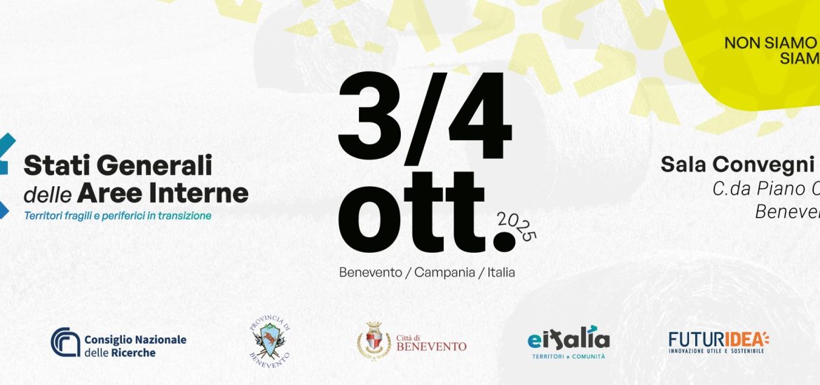E proprio da qui che partono gli Stati Generali delle Aree Interne – Territori fragili e periferici in transizione – in programma venerdì 3 e sabato 4 ottobre 2025, a Benevento, presso l’Area Musa, in contrada Piano Cappelle.