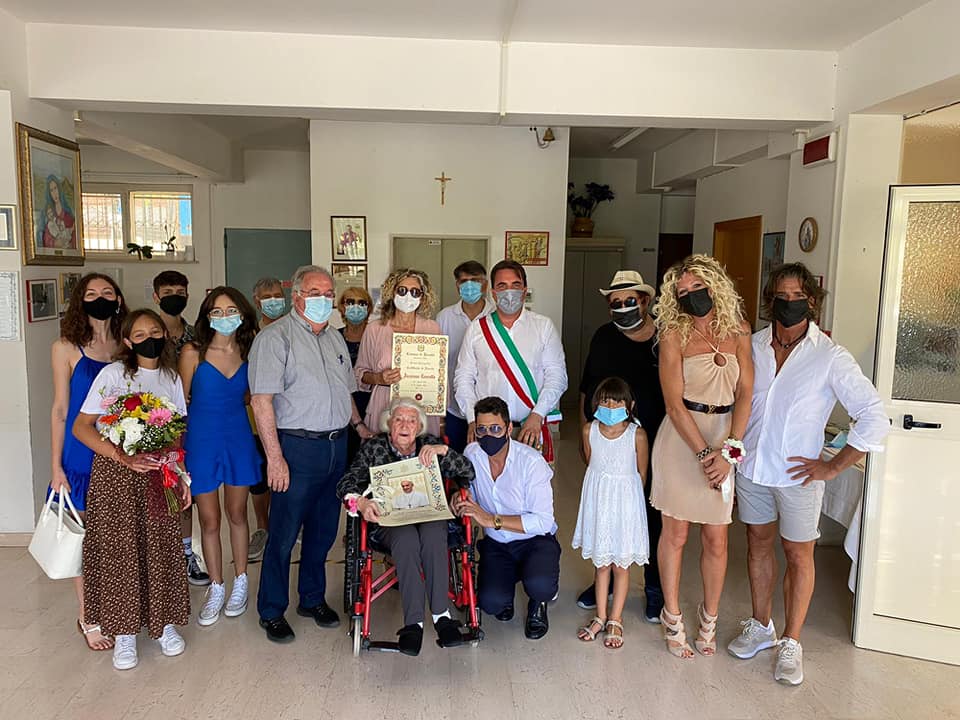 «Rosello 31 luglio 2021, un giorno speciale per il nostro paese: Concetta Iacaruso compie 100 anni. Una gioia immensa condivisa con i familiari, il nostro parroco Don Giampiero e gli operatori del Centro Anziani Sant’Antonio di Borrello. Giunti anche gli auguri speciali del Presidente Mattarella e la Benedizione Apostolica di Papa Francesco. Un abbraccio affettuoso a nonna Concettina dall’intera comunità di Rosello».