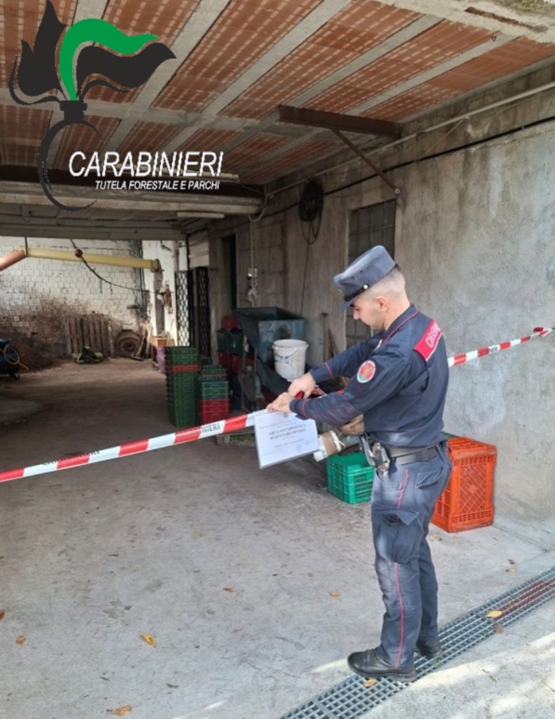 Nell’area sono state sequestrate inoltre diverse tonnellate di sansa e acque di vegetazione depositate senza requisiti, con potenziali rischi di infiltrazioni, cattivi odori e contaminazioni del suolo.