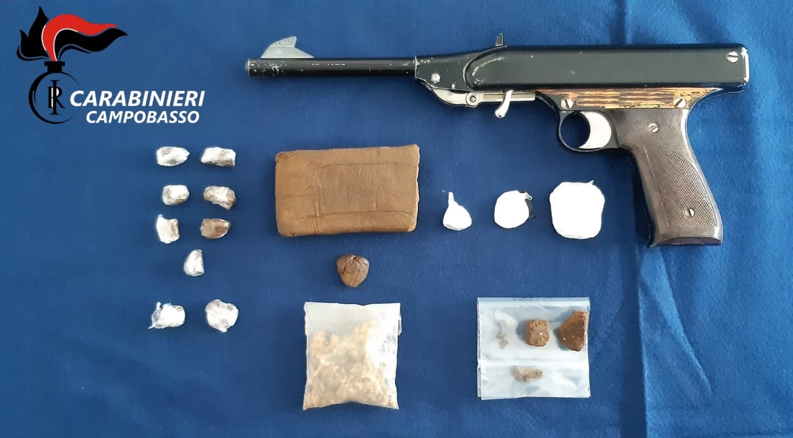 Nella circostanza, gli operanti segnalavano inoltre alla Prefettura di Campobasso ai sensi dell’art. 75 del D.P.R. 309/1990, quale assuntore, un 26enne dimorante sempre in Campomarino (CB) trovato in possesso di grammi 0,2 di Hashish per uso personale. Le sostanze stupefacenti e l’arma rinvenute veniva pertanto sottoposte a sequestro, in