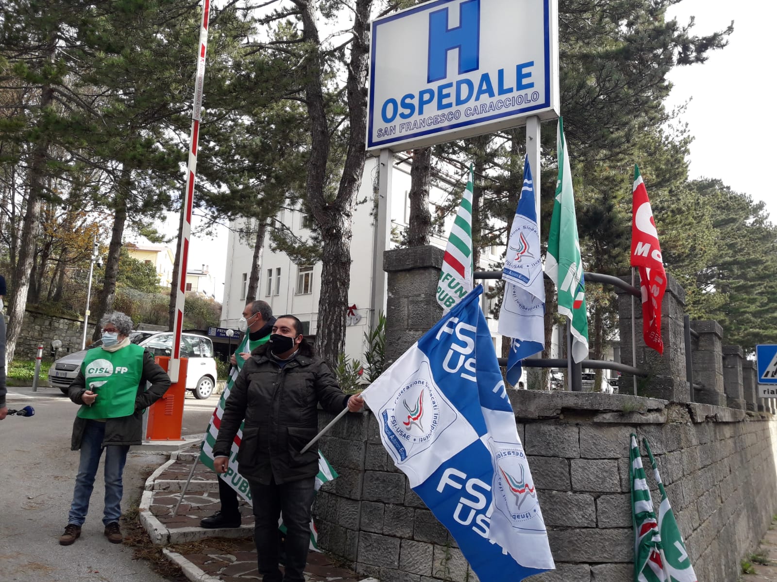 Siamo qui in sit in davanti all’ospedale simbolo di Agnone perché stiamo chiedendo il rispetto dei livelli minimi di sicurezza per il personale sanitario impiegato, ma anche il potenziamento della medicina sul territorio, soprattutto qui, in Alto Molise, zona notoriamente depressa e lontana dagli ospedali più grandi. Chiediamo anche il potenziamento delle dotazioni organiche negli ospedali, anche qui al “Caracciolo”. Non è possibile che i pochi lavoratori del settore debbano lavorare dodici ore al giorno o sacrificare le ferie magari per coprire i turni perché manca personale. Serve tranquillità per gli operatori, che si raggiunge solo aumentando la dotazione di organico, facendo assunzioni a tempo indeterminato. Ne va dei diritti dei lavoratori, ma soprattutto – ha chiuso la sindacalista – della sicurezza sia del personale che degli utenti».
