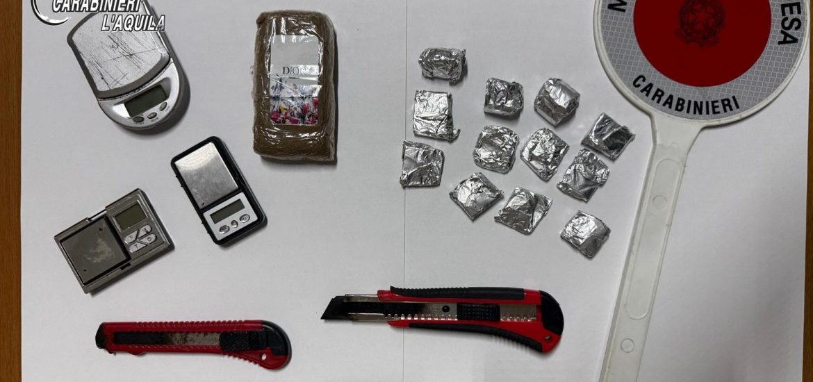 I Carabinieri, avvezzi ad ascoltare questo tipo di “giustificazioni”, decidono di estendere la perquisizione nel luogo indicato dall’uomo, ossia un esercizio commerciale di Capistrello, rinvenendo altri 40 grammi di hashish, già suddiviso in più involucri, ma anche tre bilancini di precisione, e materiale necessario al confezionamento in dosi della sostanza stupefacente.