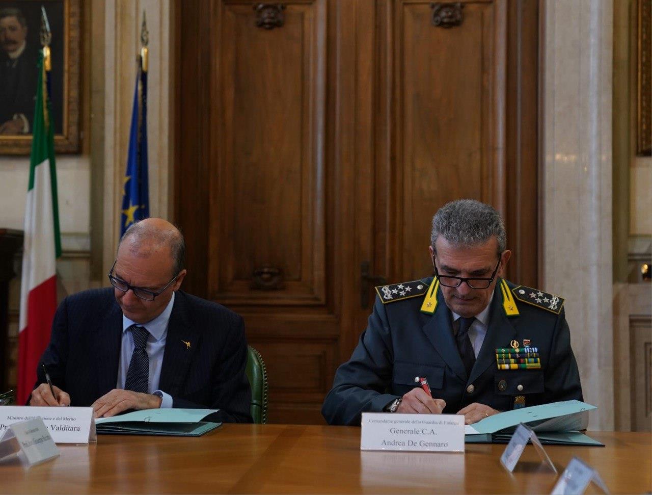 Il Ministro dell’Istruzione e del Merito Giuseppe Valditara e il Comandante Generale della Guardia di finanza Andrea De Gennaro hanno sottoscritto oggi al Ministero un Protocollo d’intesa per il contrasto ai “diplomifici”.