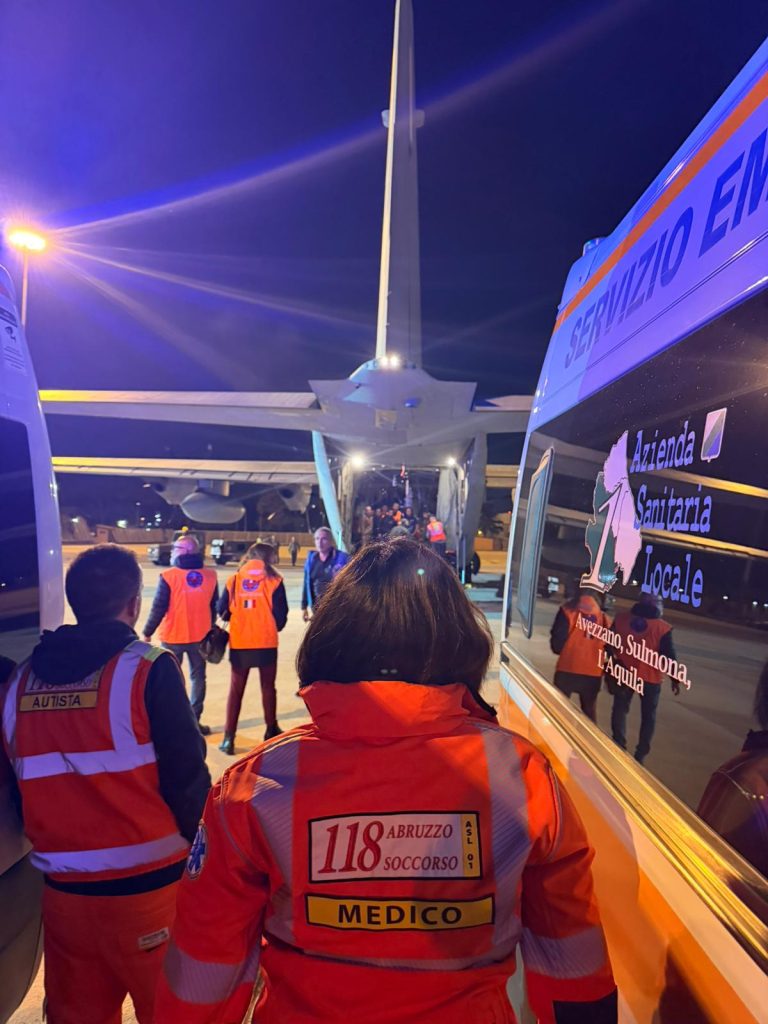 L’Abruzzo partecipa così all’iniziativa umanitaria promossa dal Governo italiano, mettendo a disposizione le sue strutture sanitarie. Il trasferimento a L’Aquila avverrà subito dopo l’atterraggio e si prevede possa completarsi intorno alla mezzanotte.