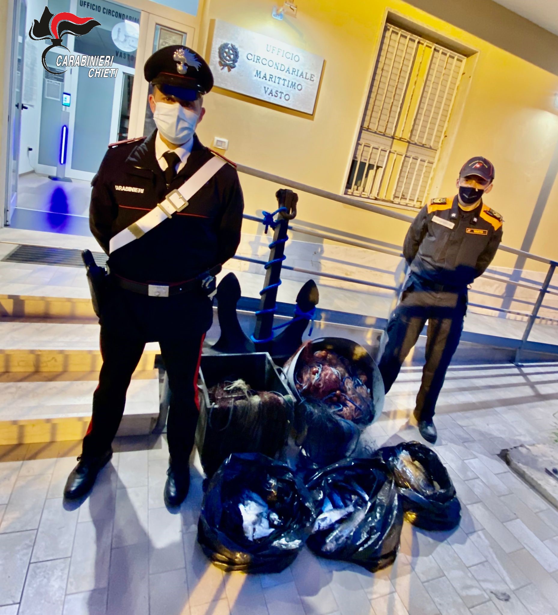I militari dell’ ufficio circondariale marittimo hanno quindi elevato nei confronti dei due pescatori di frodo una sanzione amministrativa di mille euro mentre i carabinieri della stazione di Torino di Sangro gli hanno contestato l’infrazione alla normativa per il contenimento della pandemia da Covid-19 in quanto si trovavano fuori dal comune di residenza senza giustificato motivo nonché li hanno segnalati al questore di Chieti per l’applicazione della misura di prevenzione di Pubblica Sicurezza del foglio di via obbligatorio con divieto di ritorno nel comune di Torino di Sangro per 3 anni.