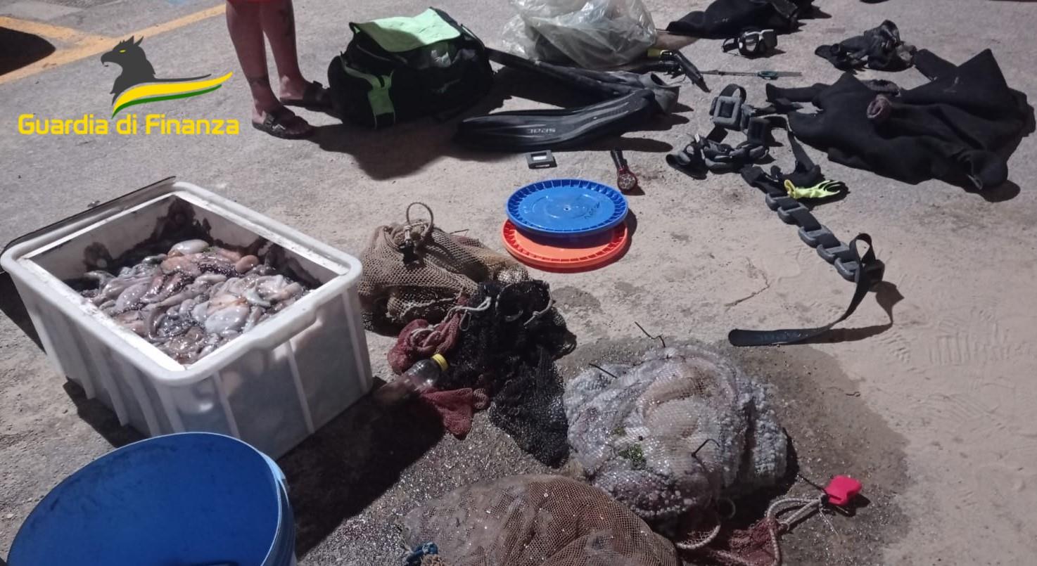 Dopo ore di immersioni trascorse a passare al setaccio quasi 4 km di scogliera e con un bottino di oltre 100 kg. di polipi, i pescatori di frodo sono riemersi trovandosi difronte i militari del Nucleo Sommozzatori della Stazione Navale di Pescara.