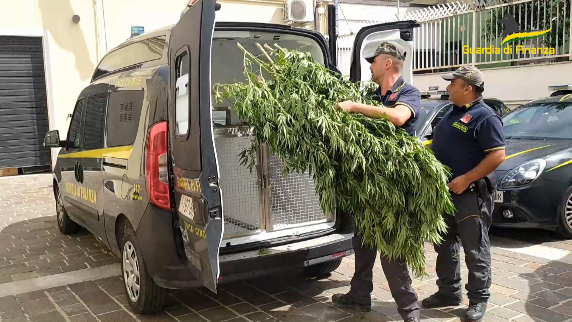 Robuste piante di cannabis, con fusti alti più di due metri. Sono stati i finanzieri del Gruppo del Comando Provinciale di Pescara ad accorgersi dello strano raccolto tra gli appezzamenti di ulivi delle colline pescaresi. E così, nell’ambito di specifici servizi operativi condotti lo scorso weekend contro la produzione e il traffico di sostanze stupefacenti, le Fiamme Gialle, con l’ausilio dei cani antidroga dell’unità cinofila, hanno sequestrato una vasta piantagione di cannabis pronta per essere tagliata, essiccata ed immessa in commercio.