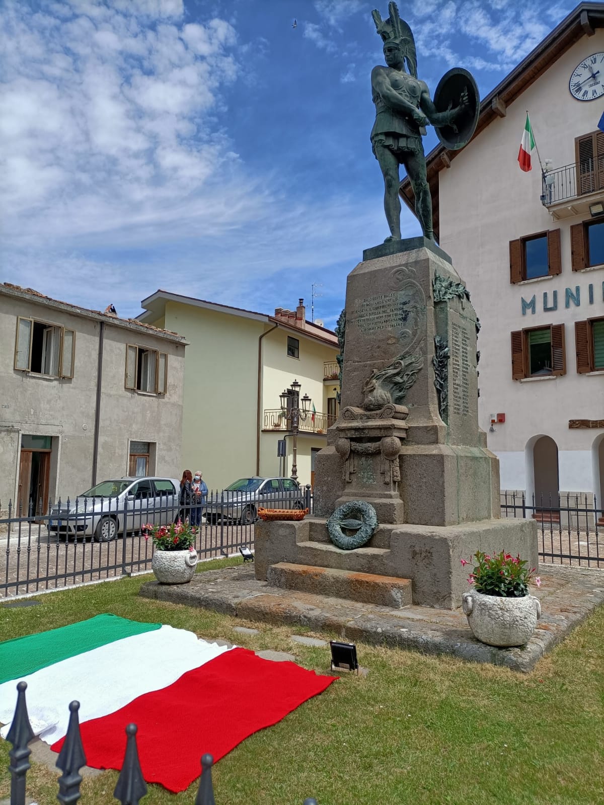 Un tricolor deposto ai piedi del Guerriero Sannita di Pietrabbondante. I giovani diciottenni del comune altomolisano, hanno voluto così commemorare la Festa della Repubblica. A confezionare la bandiera in lana e fatta rigorosamente a mano, le donne del paese non nuove a simili imprese.