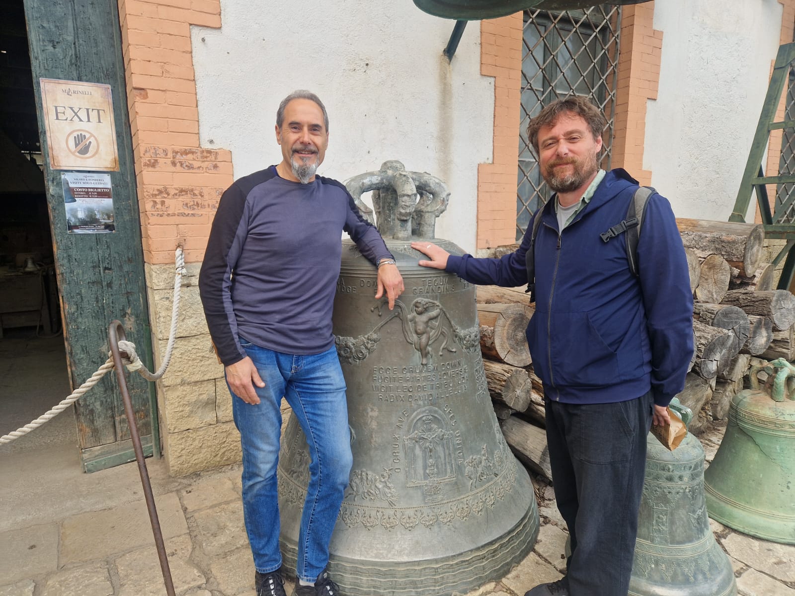 In alto Molise, dopo aver gustato un buon caffè e una fetta di panettone alla mela zitella nella pasticceria di Gerri Labbate, Pinuccio ha avuto modo anche di visitare il laboratorio e il museo della campana della Pontificia fonderia Marinelli dove ha apprezzato l’antica arte campanaria.