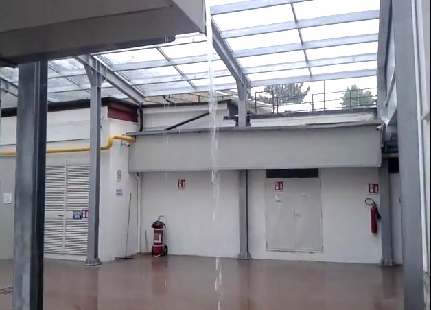 AGNONE – Piove governo ladro, avrà pensato più di qualcuno quando si è trovato di fronte una scena del genere. Ma piove davvero (guardate il video) nell’atrio del pronto soccorso dell’ospedale ‘San Francesco Caracciolo’ di Agnone, dove quotidianamente transitano autoambulanze e pazienti che vengono ricoverati nella struttura. Così una banalissima giornata di pioggia, ha fatto sì che in pochi minuti l’acqua entrasse, con una portata impressionante, nella copertura in pvc realizzata solo un anno fa. Acqua poi finita sul pavimento a sua volta reso viscido e pericolosissimo per gli operatori sanitari costretti ad acrobazie per restare in piedi e garantire il servizio all’utenza. Non c’è che dire. Lasciamo ogni commento ai nostri lettori che avranno modo di visionare le immagini.