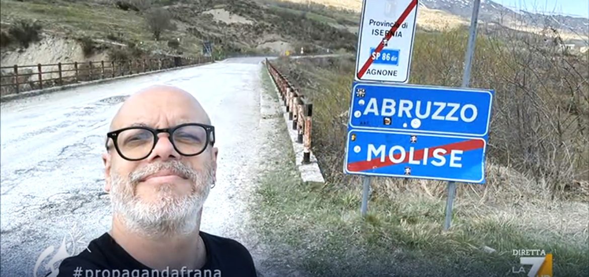 Frane, dissesti, strade interdette al traffico e la barzelletta del ponte sul Sente chiuso da quasi nove anni. Un incredulo Diego Bianchi ha acceso le telecamere di “Propaganda Live“, nella puntata andata in onda ieri sera su La7, sull’isolamento territoriale, economico, sociale e di civiltà in cui versano le popolazioni dell’Alto Molise e Alto Vastese.
