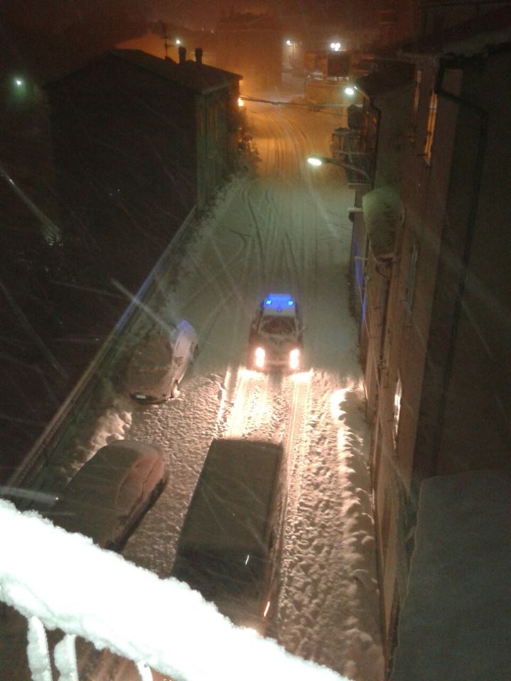 L’auto medica della Asl non è riuscita a raggiungere il centro di accoglienza causa neve. Sul posto gli uomini dell’Arma e il personale del Comune per sbloccare la strada innevata.