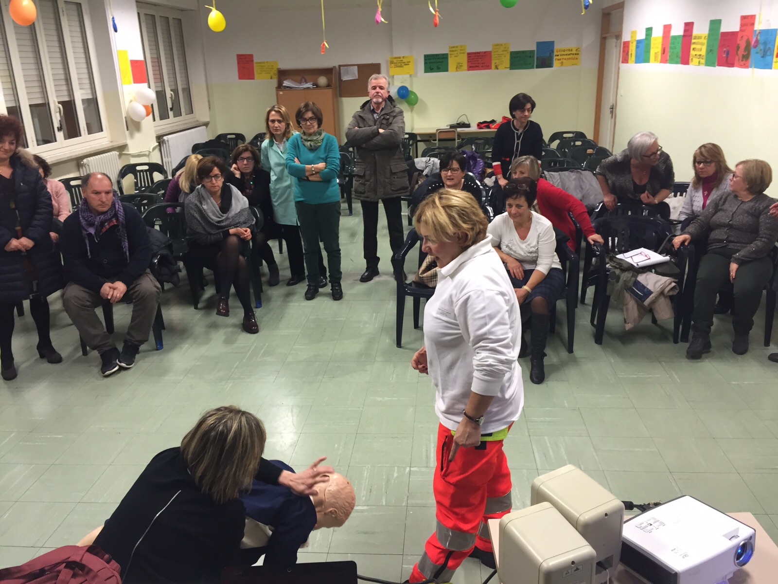 Il corso teorico, ma soprattutto pratico, ha visto la partecipazione di quaranta docenti che hanno imparato, attraverso i manichini, a compiere le manovre di disostruzione delle prime vie aeree, grazie alla partecipazione degli istruttore della centrale operativa del 118 di Chieti.