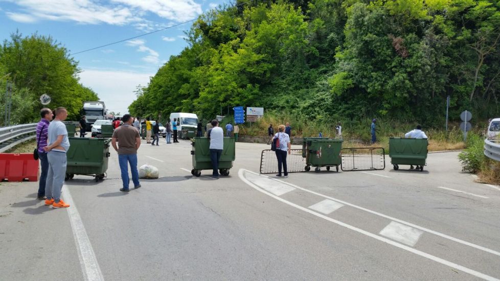 Cassonetti, reti e materassi in mezzo alla strada a bloccare la statale 16 in territorio di Torino di Sangro.blocco statale profughi
