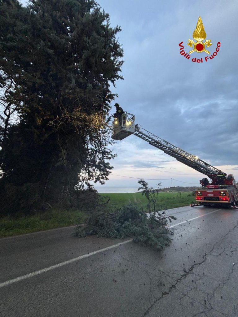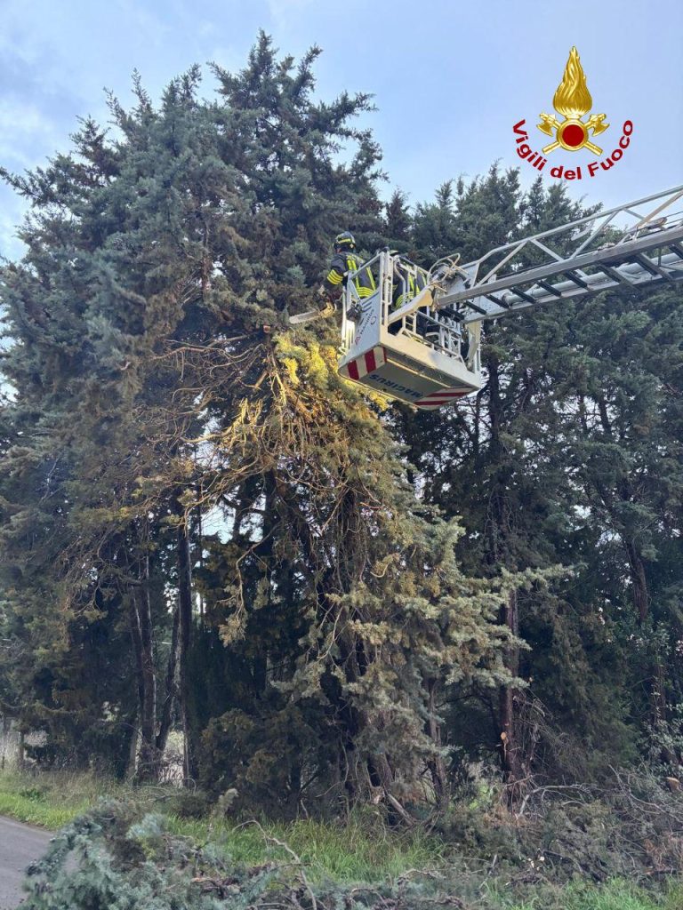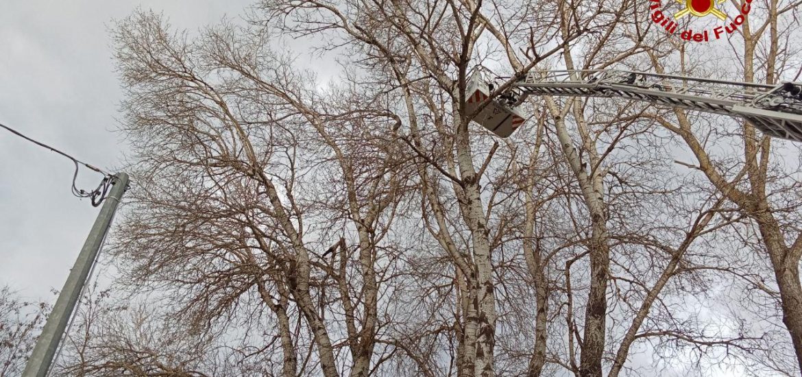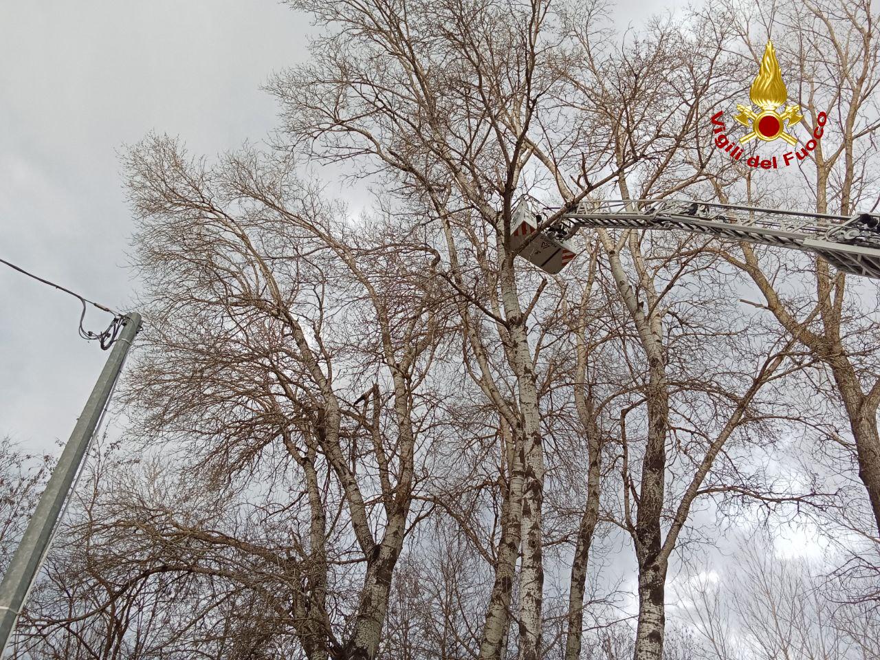 Rami pericolanti minacciano la sede stradale, numerosi interventi dei Vigili del fuoco