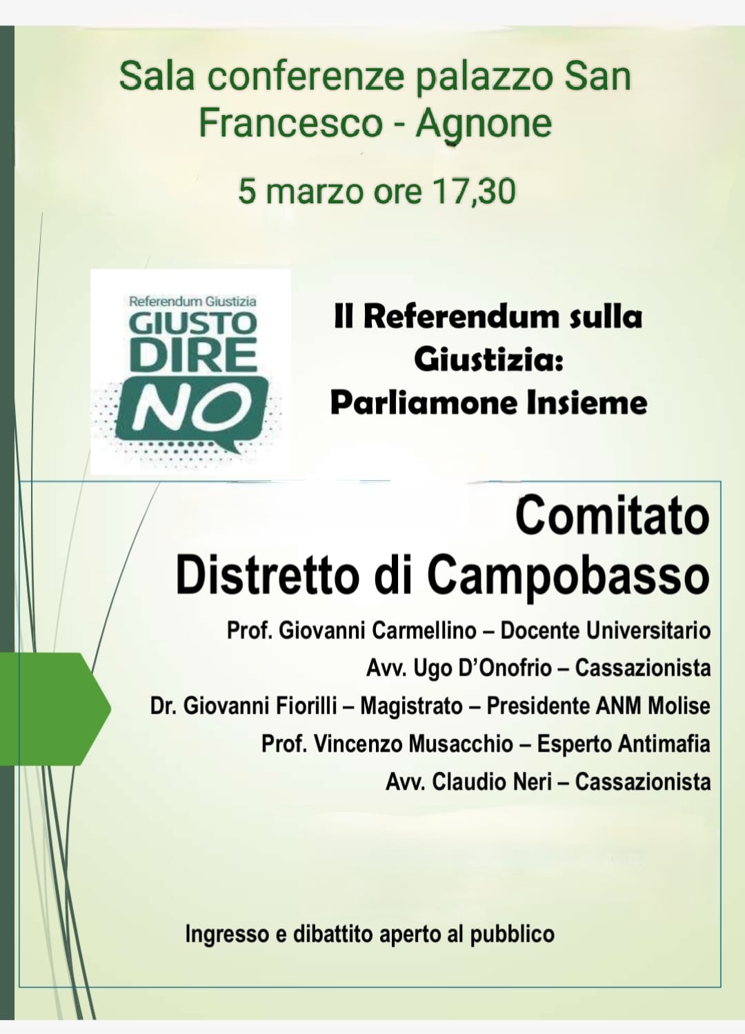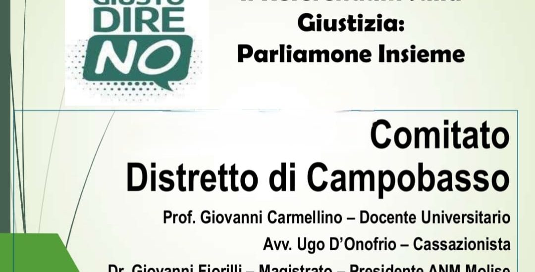 Si terrà domani, 5 marzo alle ore 17.30, presso la sala conferenze di Palazzo San Francesco ad Agnone, l’incontro pubblico dal titolo “Il Referendum sulla Giustizia: Parliamone Insieme”, promosso dal Comitato del Distretto di Campobasso.