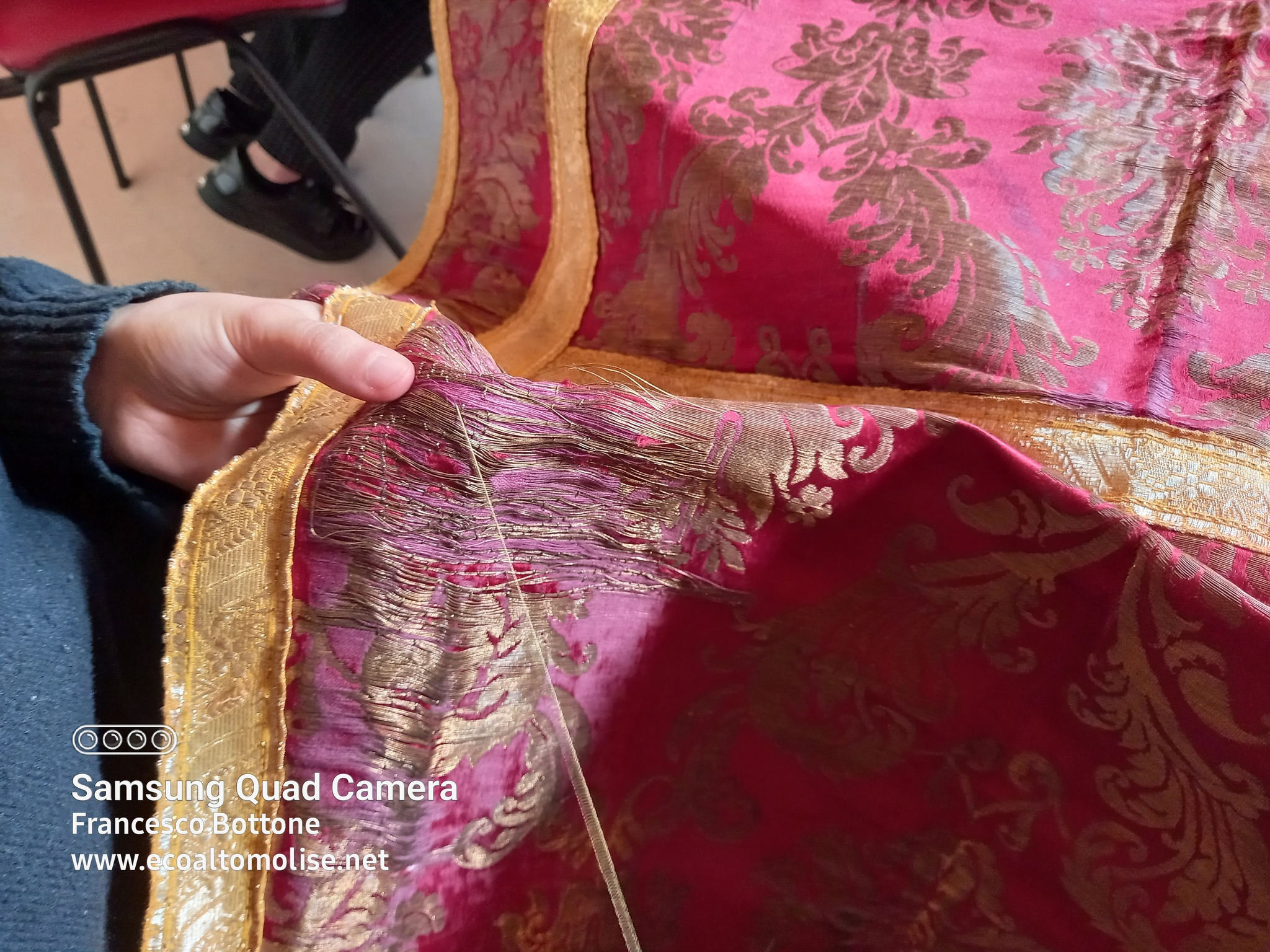 Un corso gratuito per i partecipanti, come tutti gli altri attivati dalla Caritas, ad esempio quello di apicoltura presso il villaggio San Vito di Castelguidone o quello di restauro del legno, che pone le basi, in termini di trasmissione di conoscenze e competenze, per restare sulla propria terra. Perché il fine ultimo di tutte le iniziative della Caritas è quello: combattere lo spopolamento, non a chiacchiere come fanno le istituzioni a più livelli, ma concretamente, nei fatti, creando condizioni di autoimpiego. Costruttori di speranza e di futuro, anche attraverso il restauro di una antica e preziosa dalmatica.