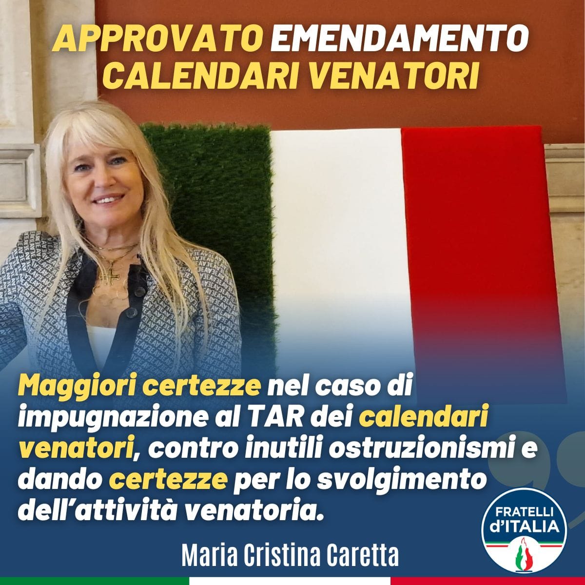 «Come ben sappiamo, infatti, fin troppe volte l’impugnazione del calendario dinanzi al TAR rappresenta una strategia ostruzionistica per danneggiare il regolare svolgimento dell’attività venatoria. Con l’approvazione del mio emendamento verranno invece inseriti dei paletti. Anzitutto 30 giorni di termine dalla pubblicazione del calendario venatorio per la sua impugnazione, il riconoscimento delle associazioni venatorie come parte in giudizio e, finalmente, la garanzia di regolare svolgimento dell’attività venatoria anche in caso di accoglimento della domanda cautelare, sino alla pubblicazione della sentenza che ne definisce il merito, utilizzando come riferimento l’ultimo calendario venatorio legittimamente approvato. C’è ancora molto da fare, ma è un primo passo in avanti per dare risposte a professionisti della natura che lavorano con determinazione per garantire la manutenzione del nostro patrimonio faunistico».