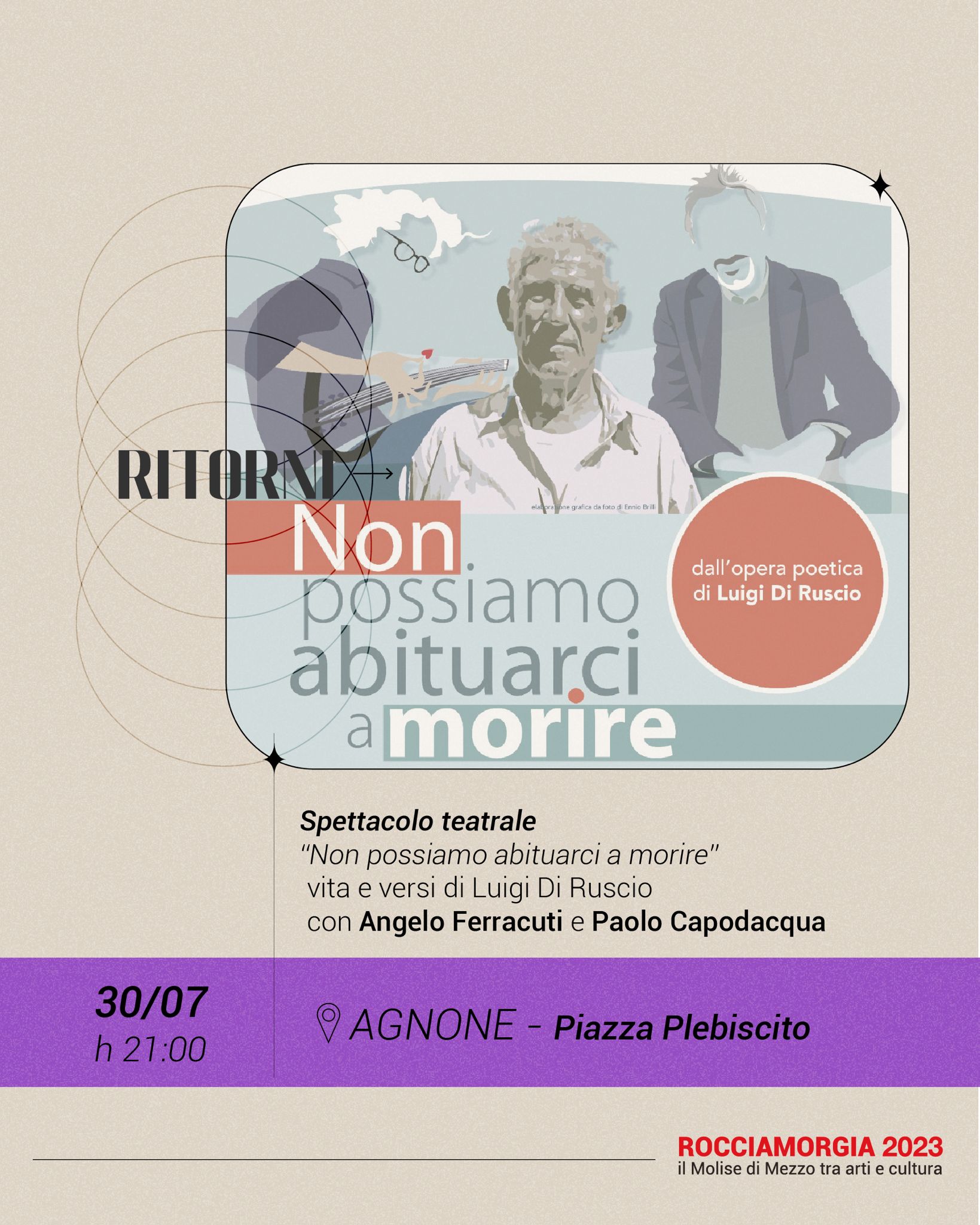 In Piazza Plebiscito alle ore 21.30 lo spettacolo “Non possiamo abituarci a morire” vita e versi di Luigi Di Ruscio con Angelo Ferracuti e Paolo Capodacqua.
