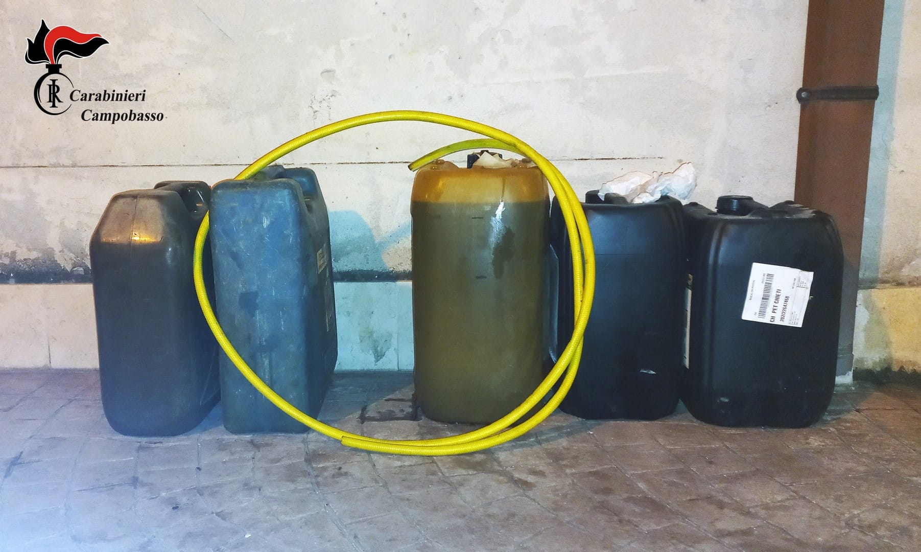 I militari infatti, nel corso di un mirato servizio perlustrativo svolto in orario serale a Montecilfone (CB), notavano lo stesso che, alla loro vista, tentava di allontanarsi frettolosamente a piedi da un’area dov’erano parcheggiati alcuni autobus di linea. Gli operanti pertanto lo raggiungevano e lo bloccavano, constatando che emanava un forte odore di gasolio di cui erano chiaramente intrisi anche i suoi abiti. L’uomo veniva pertanto sottoposto a perquisizione personale d’iniziativa e trovato in possesso di un puntale in ferro, di un cacciavite e di un chiodo metallico, che si appurava essere stati usati poco prima per forzare un portellone laterale e forare il serbatoio di uno degli autobus ivi parcheggiati, asportando complessivi 105 litri di detto carburante, rinvenuti nell’occasione all’interno di 5 taniche trovate a poca distanza dal luogo del crimine unitamente ad un tubo in gomma utilizzato anch’esso per compiere l’azione delittuosa.